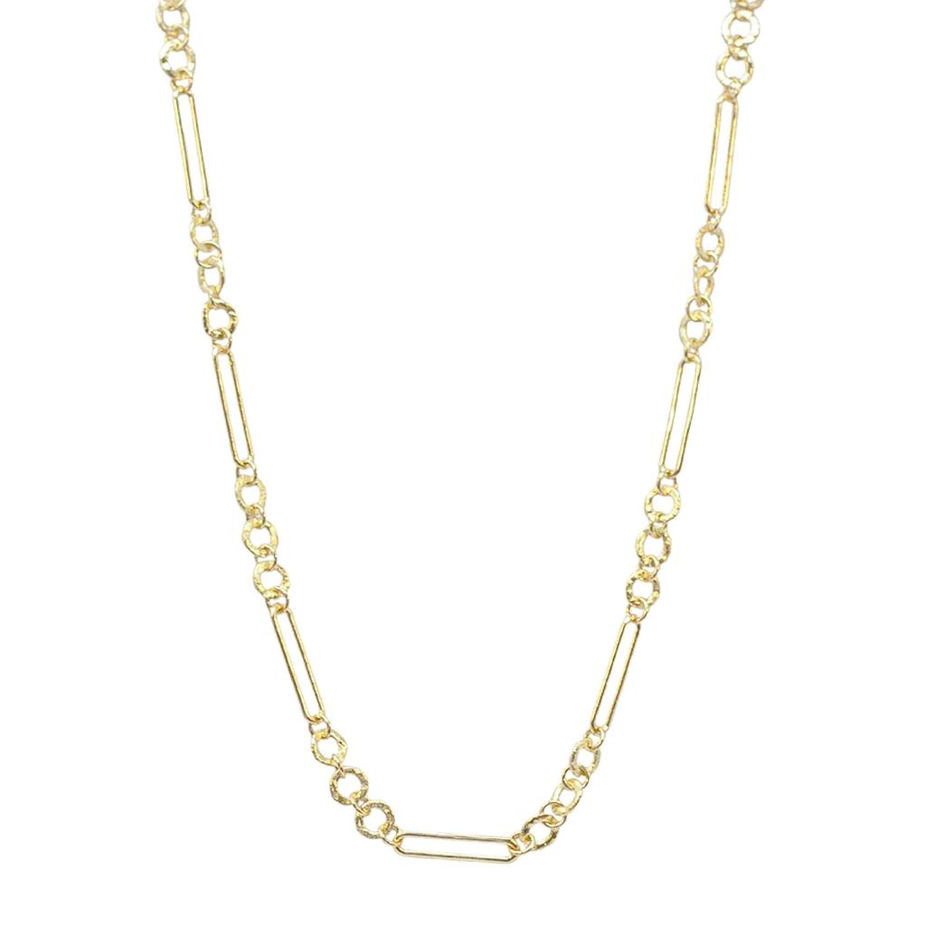 This necklace features 18kt yellow gold paperclip links with a toggle clasp. This necklace is 16-17 inches.