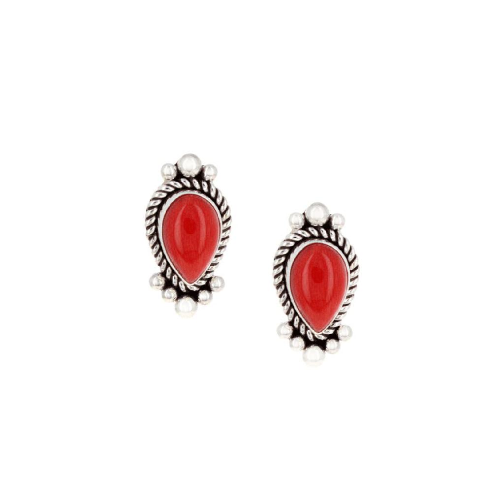 Sterling Silver and Coral Dot Post Earrings by Artists Artie Yellowhorse and Daughters.
