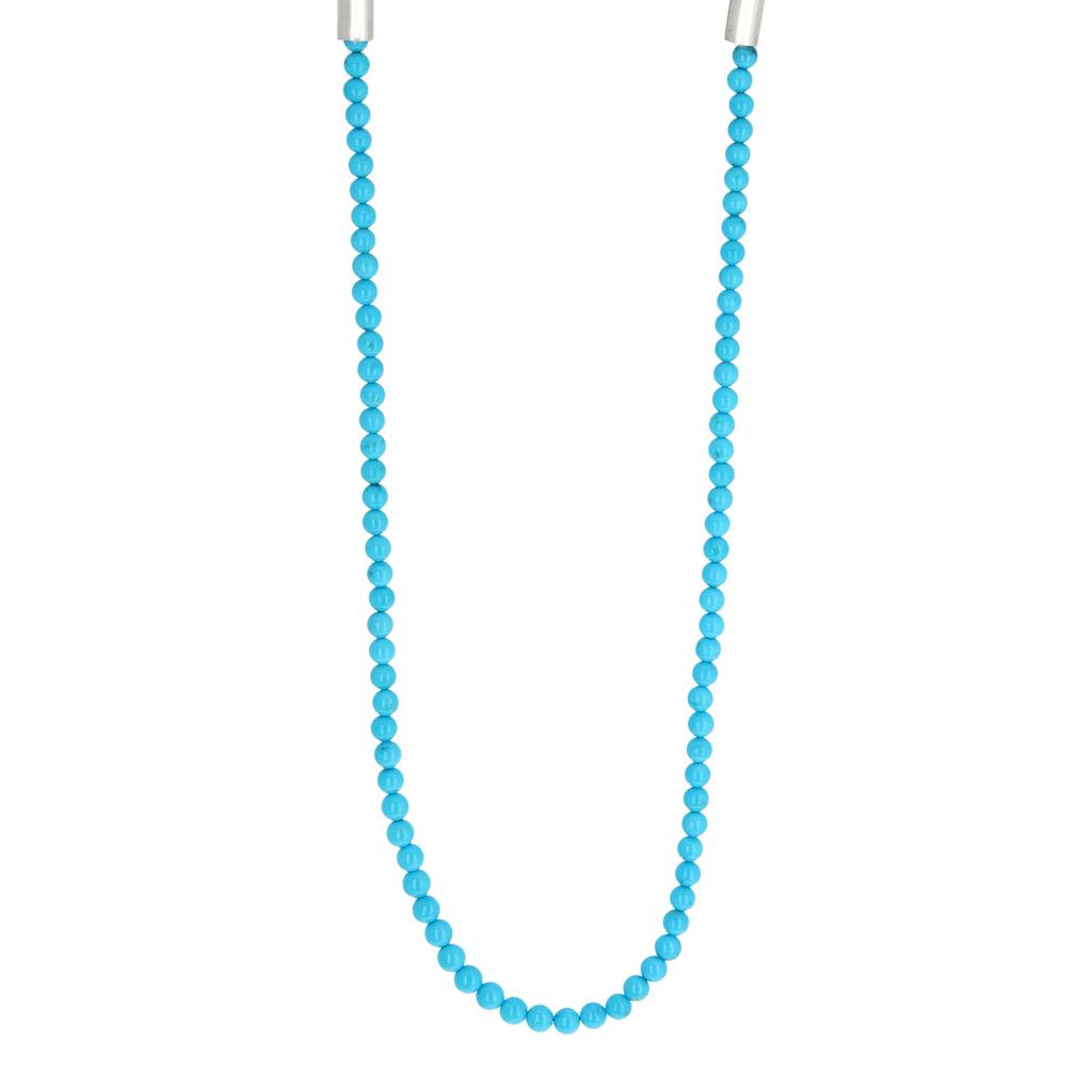 Sterling Silver and Sleeping Beauty Turquoise Beaded Necklace by Artists Artie Yellowhorse and Daughters.