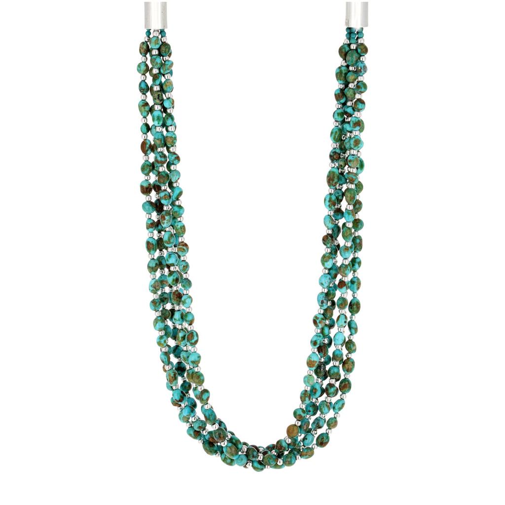 Sterling Silver and Sonoran Turquoise 6 stand Beaded Necklace by Artists Artie Yellowhorse and Daughters.