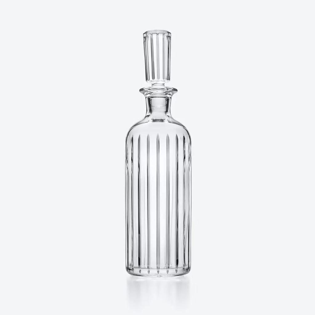 This Baccarat Clear crystal Harmonie Round Whiskey Decanter has a trim, streamlined silhouette. Consecutive parallel lines travel cleanly along the form, subtly grazing the Clear crystal bottle from its base to its shoulder. The lean stripes bring a textural quality to the surface, showcasing the three-dimensionality of the decanter and creating a visual depth to the whiskey within. The tall beveled stopper, which resembles a stately top hat, adds linear emphasis. The vertical sweep of the striping is also present on other pieces of the Harmonie collection, which includes highballs and tumblers. All of these pieces complement a well-stocked bar for the smoothest of drinking experiences. Harmonie is the collection for creative cocktail enthusiasts and lovers of rare whiskies.