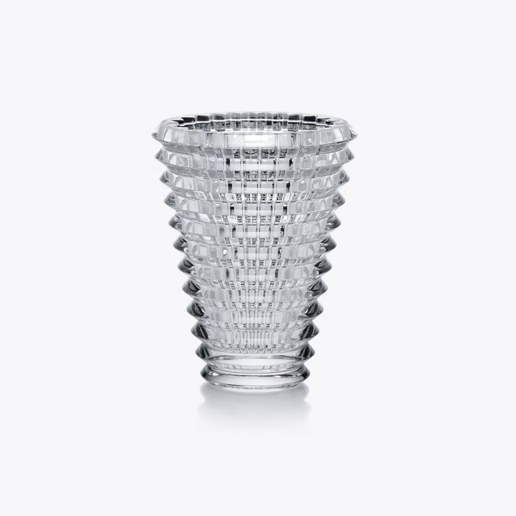 The wavy design of the crystal Eye vase comes from an extraordinary technique: exterior horizontal cuts and interior vertical cuts combine to produce a magic visual effect. With bevel cuts conjuring perpetual movement, the Eye vase is a spiral of light. The Eye Vase fabrication produces a multitude of shades and shapes leaving scope for an infinite number of compositions for every taste and in every color.