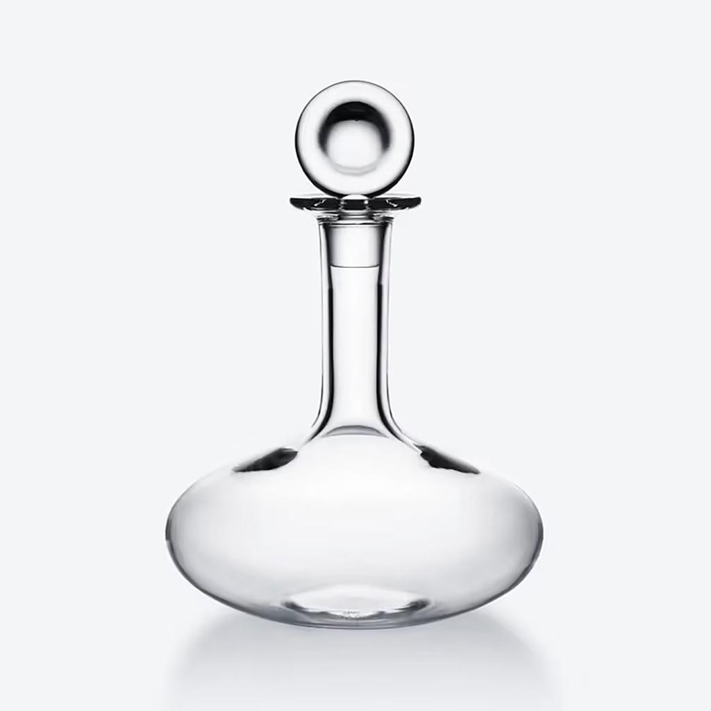 The « Oenologie » decanter in clear crystal is ideal for airing a young wine and releasing its flavors. The shape recalls the volumetric bottles seen in laboratories. Decanting a young wine allows its aromas to develop and be savored later: airing it out releases its full flavor. Decanting may also be a fitting option for older wine that has yet to reach complete maturity. The Baccarat Clear crystal Œnologie Decanter is not only a vehicle that helps the wine achieve its full integrity; it is also a stunningly crafted piece. Its build echoes that of a laboratory volumetric flask, but its functional form is elevated thanks to the exquisite Baccarat Clear crystal and its exceptional design flourishes. The poise of the slender neck morphs gracefully into the elliptically-shaped base. The stopper crowns the silhouette with a perfectly rounded loop of Baccarat Clear crystal.