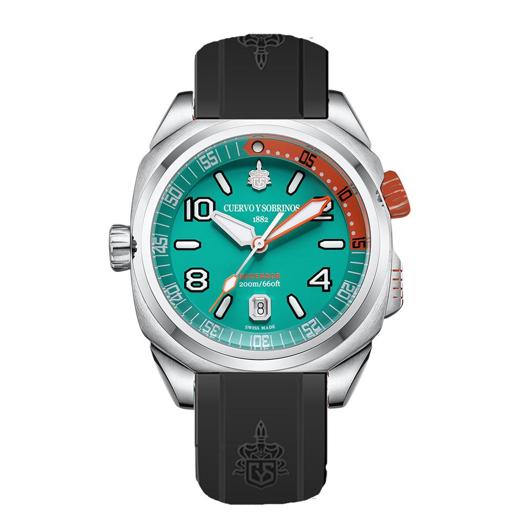 The Buceador Caribe draws inspiration from Cuba’s vibrant marine life and adventurous spirit. Now enhanced with a new Cordura strap perfectly matching the dial’s colorful hues, and a high-quality FKM rubber strap for ultimate comfort and durability, this dive watch blends rugged performance with Caribbean flair—ready for every underwater adventure.