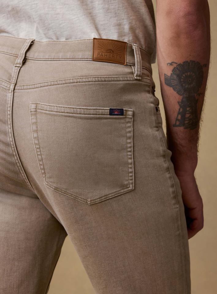 Faherty's Workhorse. The first pant we're pulling off the rack on any given day of the week. The Stretch Terry 5-Pocket Pant is rugged and structured, best known for its authentic denim look with that signature Faherty HOLY $&*! comfort factor. Even better? The fabric is yarn-dyed—meaning the color is woven in from the start so they keep their depth, softness, and lived-in look wash after wash.