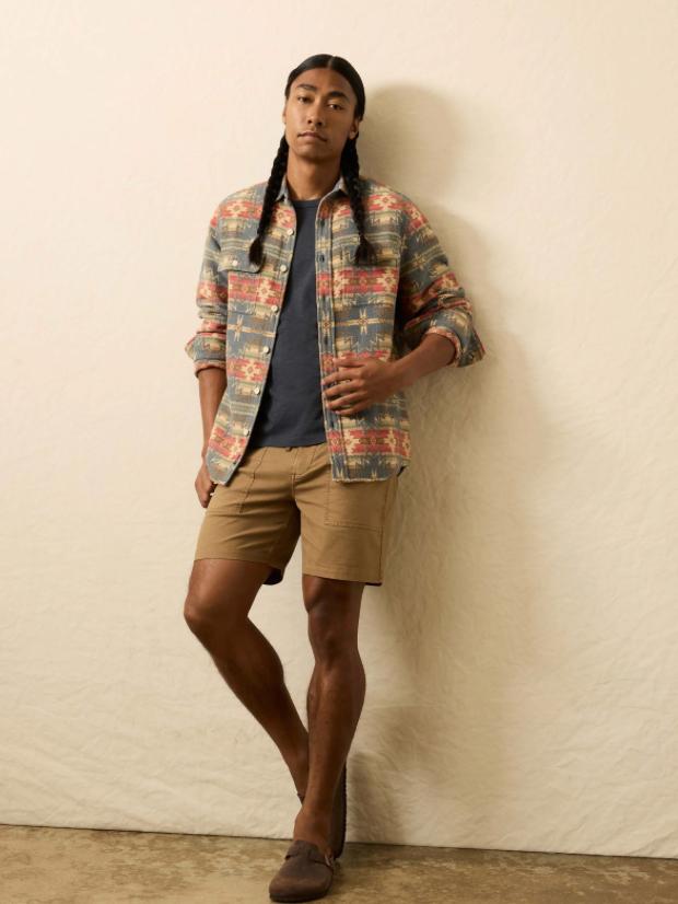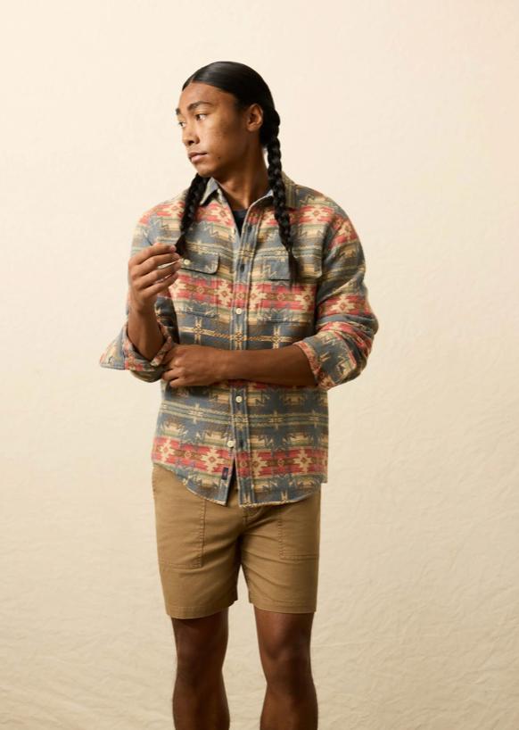 This rugged overshirt thoughtfully displays Doug Good Feather's nature-inspired motif in our signature laid-back fit—that perfect spot between slim and boxy. An artist, veteran, author, and teacher, Doug Good Feather is from the Standing Rock Lakota and Dakota Nation and is the founder of the Lakota Way Healing Center. Our ongoing partnership has enabled the Center to purchase 160+ acres of land and expand its ability to offer Indigenous spiritual practices to anyone in need of healing.