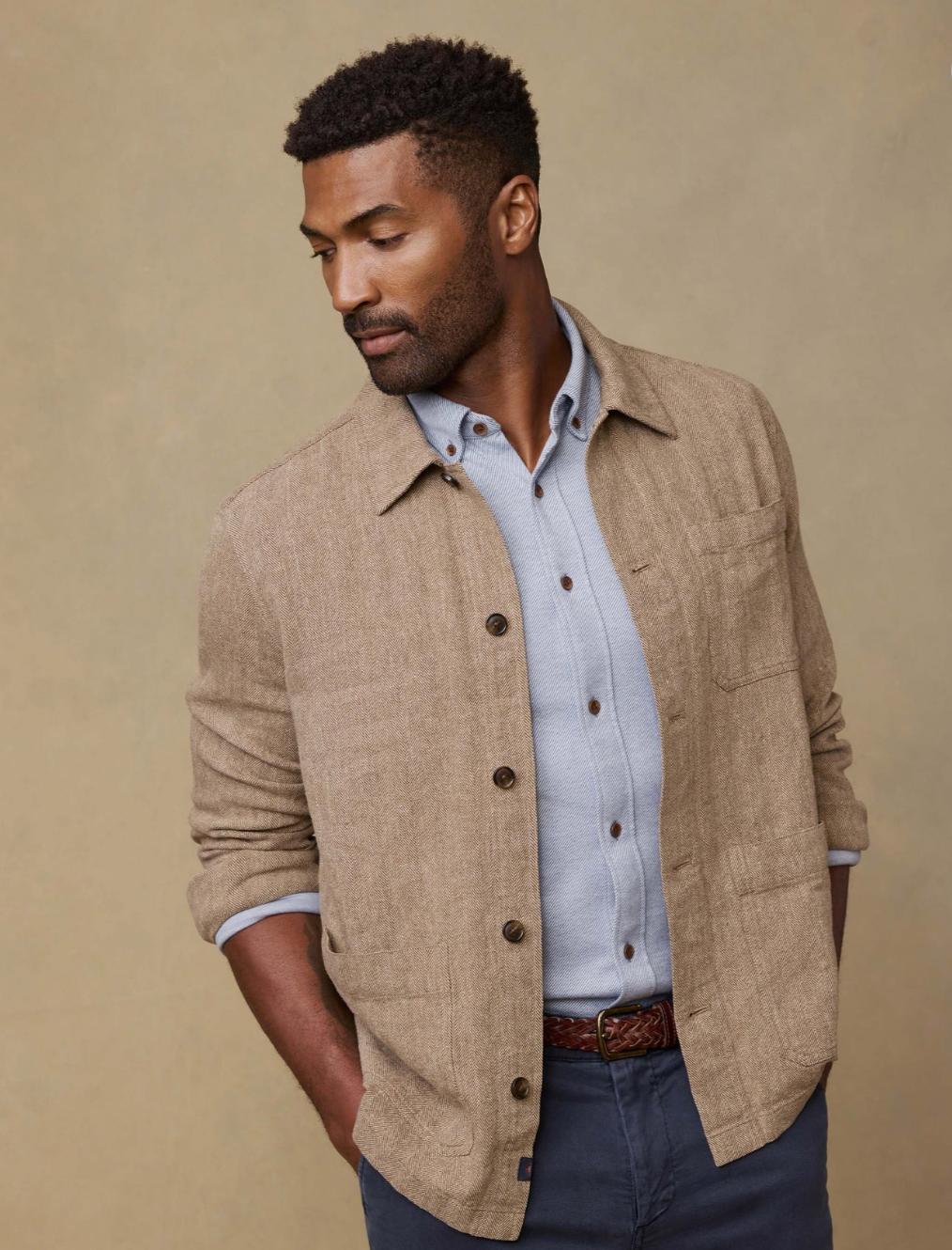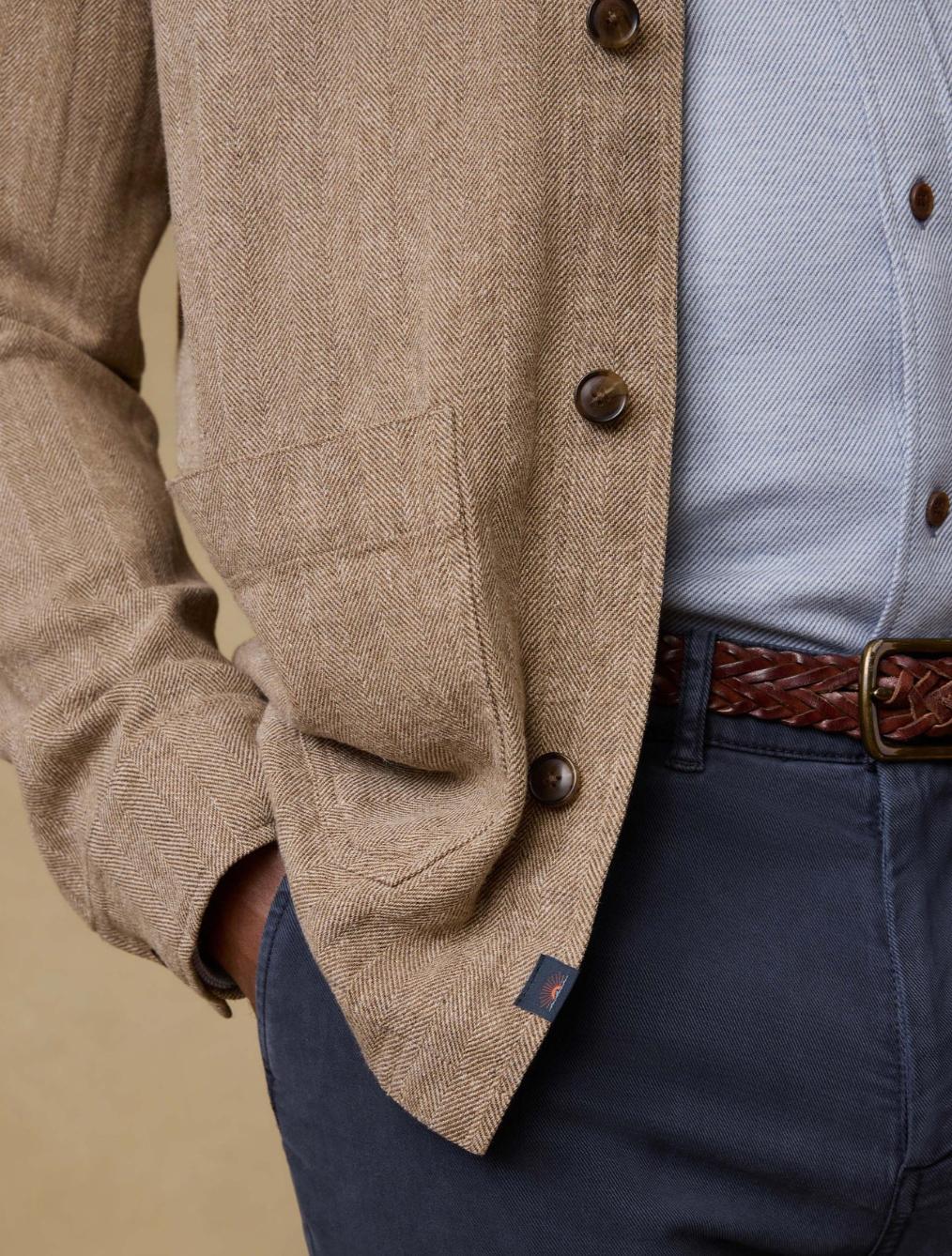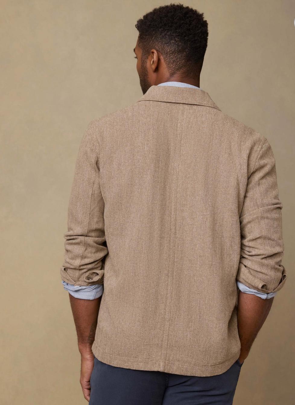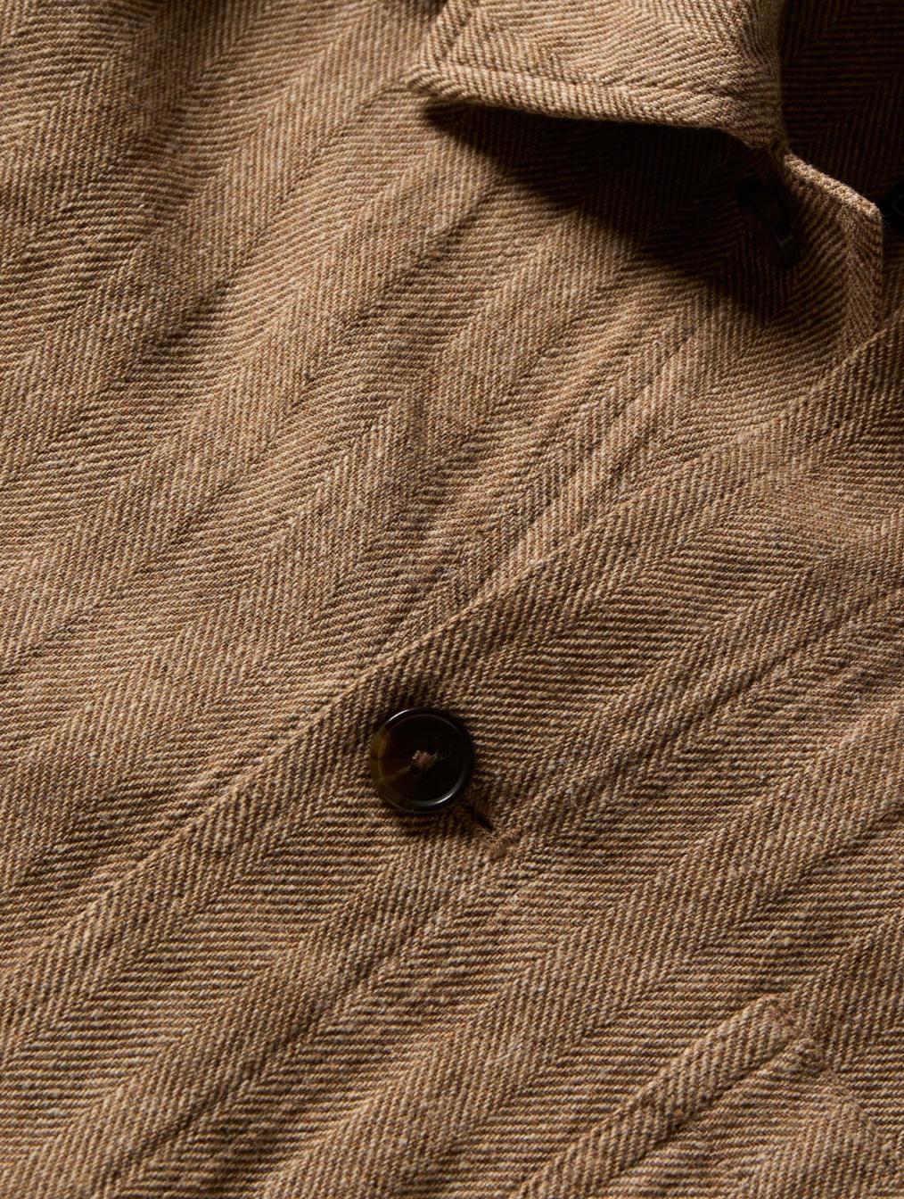 This Studio Jacket begins with a natural herringbone base, then is overdyed to create rich, tonal color with subtle variation throughout. The dye settles differently across the fabric, enhancing texture and giving each piece a softer, more lived-in character over time. Finished with a shirt collar, three-pocket construction, and a button-front closure, it balances polish and practicality for everyday wear.