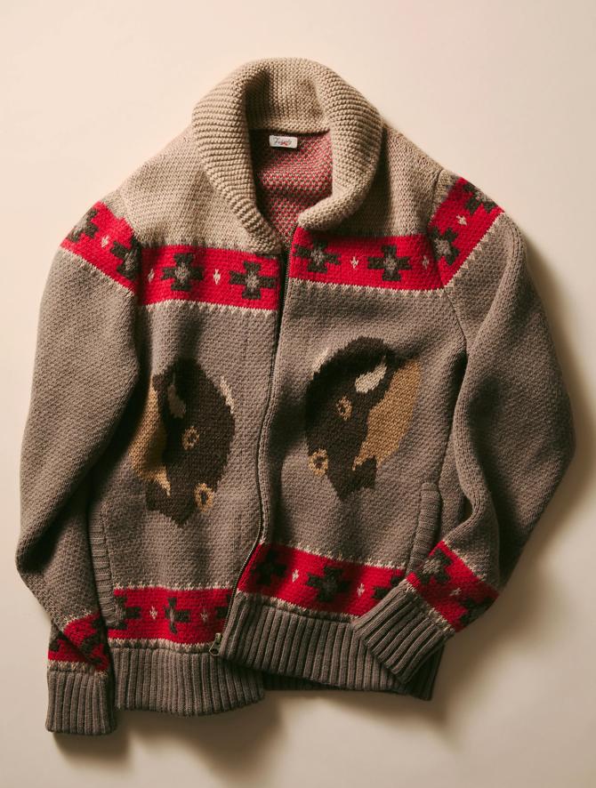 An iconic statement piece for your winter wardrobe, this bold cardigan was created in collaboration with Native artist Steven Paul Judd (Kiowa-Choctaw). The cardigan's timeless shawl collar and the luxurious weight of the alpaca blend perfectly work together to ward off winter's chills.