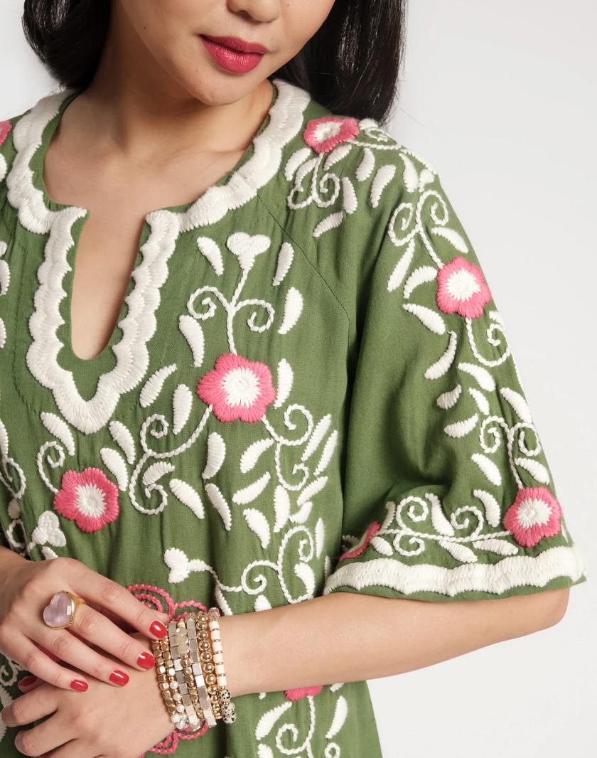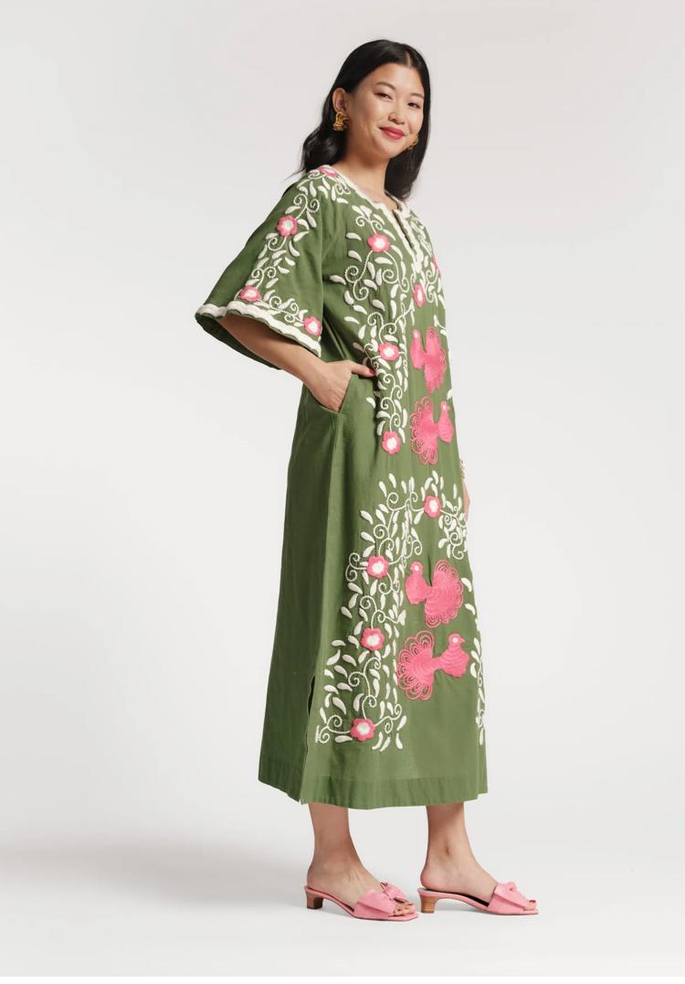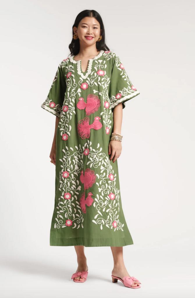 Embroidered Peacock Charming Caftan by Frances Valentine