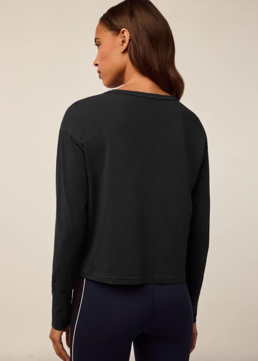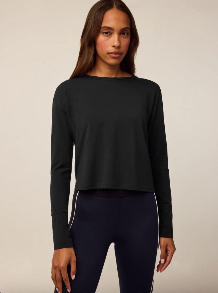 The Sloane Long Sleeve Tee is made with Pima Cotton to deliver a buttery soft active tee with moisture-wicking properties. Loose on the body and with a cropped look that sits just above the waistline, pair this top with your favorite sports bra and leggings for the ultimate active set.