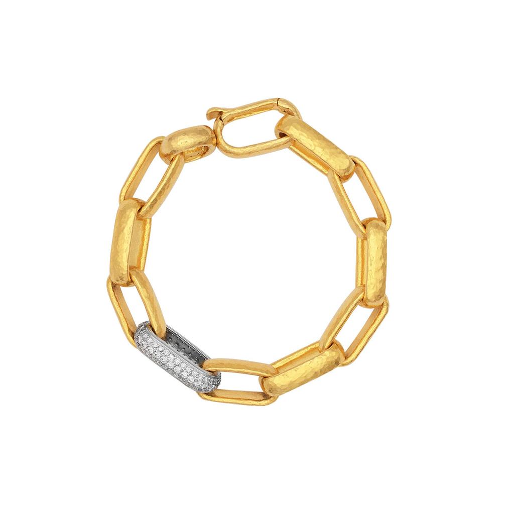 Sterling Silver and 24kt Yellow Gold and Diamond Link Bracelet from the ‘Hoopla Collection’ by Gurhan.
