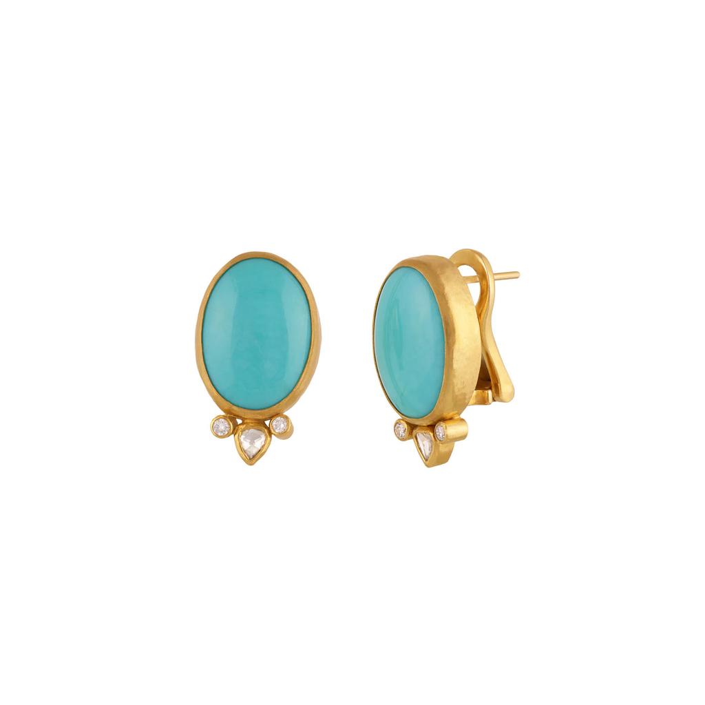 24kt Yellow Gold, Diamond, and Sleeping Beauty Turquoise Post Earrings from the ‘Rune Collection’ By Gurhan.