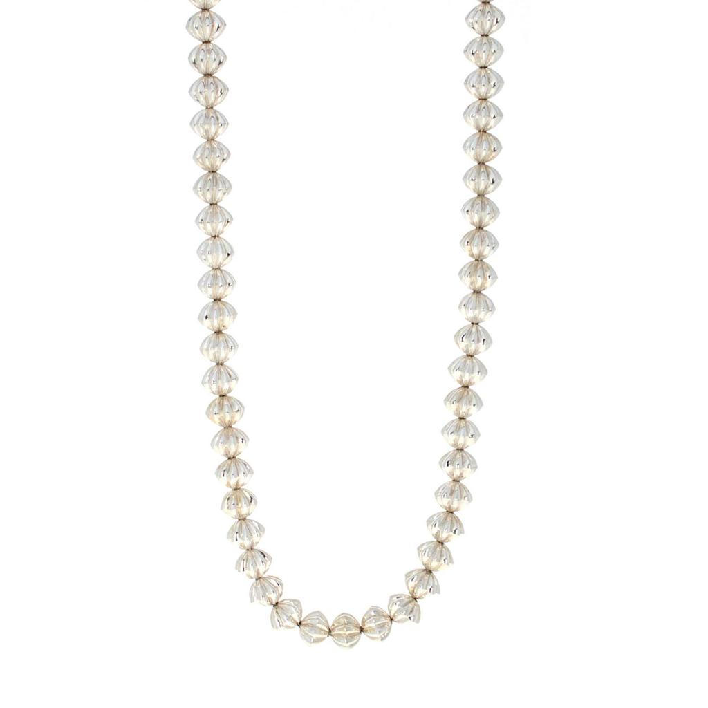 Polished Sterling Silver 10mm Fluted Beaded Necklace by Artist Jimmy Secetaro.