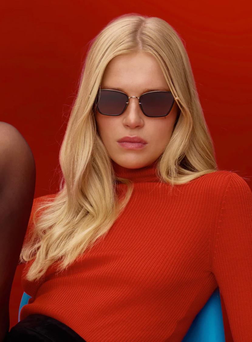The ultimate cool girl, BELLA features a cat-eye construction in an ultra lightweight pairing of precious metal and acetate. She’s subtle yet fierce with a small to average upswept look that’s universally flattering.