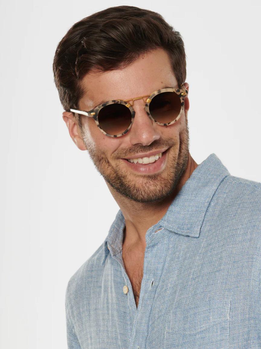 Our iconic classic. Inspired by the historic cast-iron balconies found in New Orleans’ French Quarter, the ST. LOUIS’s rounded silhouette complements every face shape while its distinct brow upgrades y’alls everyday uniform. Easy wear is a given with sturdy-yet-comfortable supports at the nose and temples.
