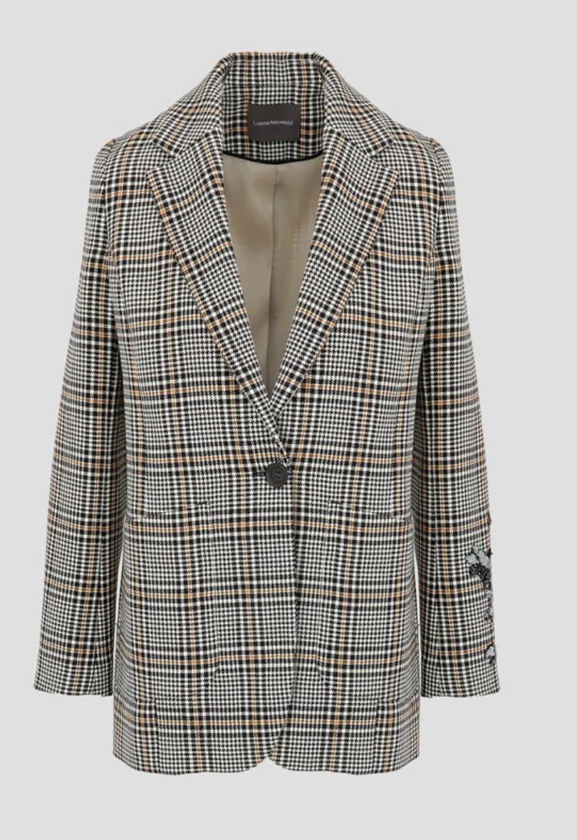 Wool Checked Jacket with Embroidery by Lorena Antoniazzi