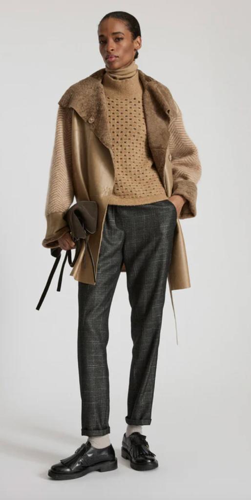 Among the favorite of the maison, the wool-blend jogger is an indispensable piece in every Lorena Antoniazzi collection. Designed with a classic slim-leg fit and a soft, adjustable elasticated waist, it is engineered for maximum comfort and a lightweight feel. The wool and viscose blend offers an unparalleled softness against the skin, while the timeless check pattern elevates winter outfits with enduring elegance. In its classic and elegant iteration, it can be worn with a coordinated vest, echoing the codes of traditional tailoring, or integrated into a refined and personal style for a look that is casual yet consistently chic.