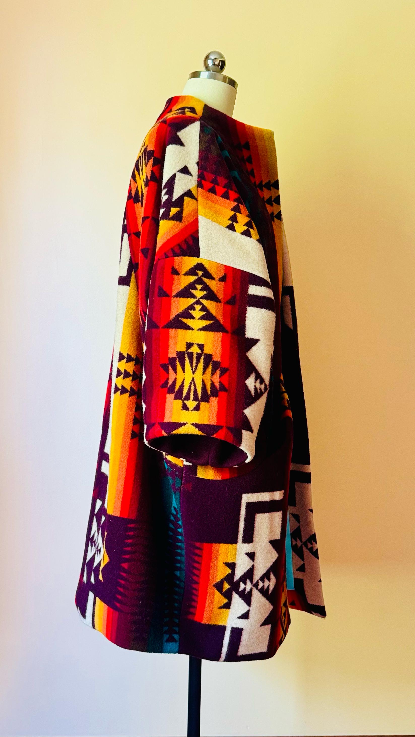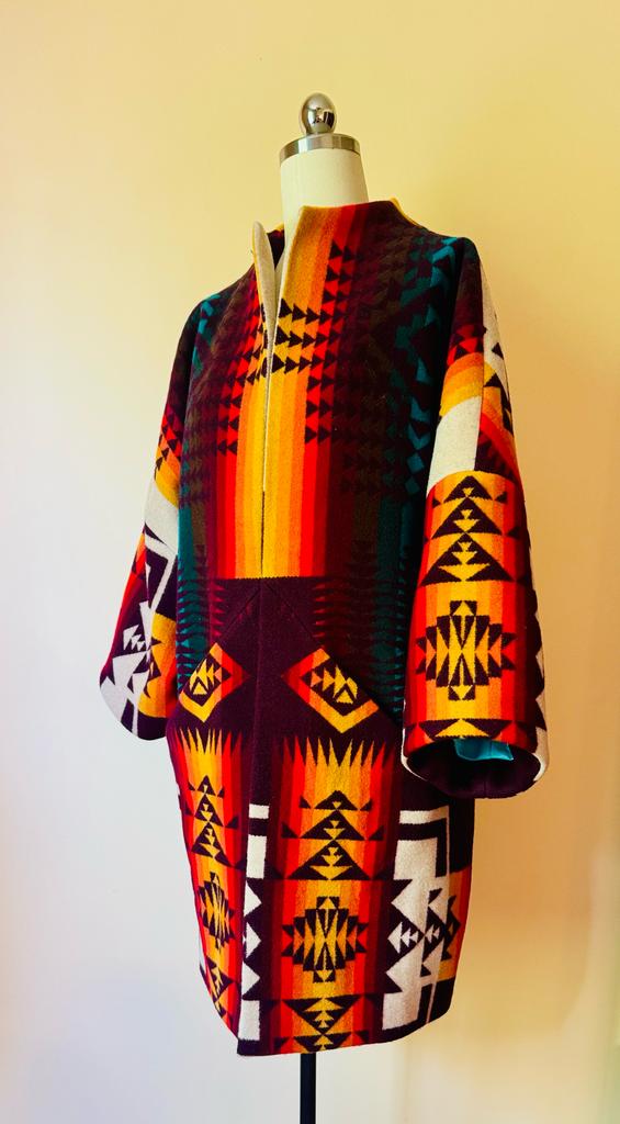 Short Pendleton Wool Coat with Fringe