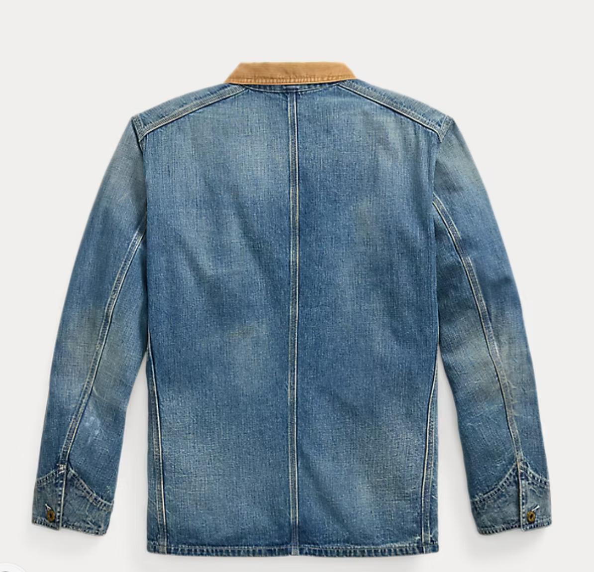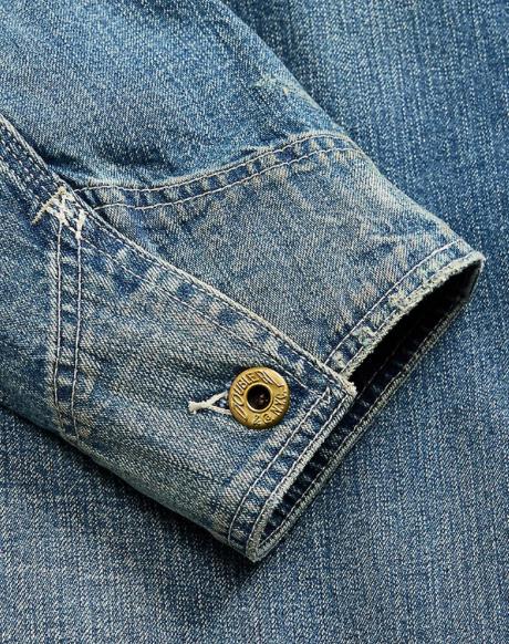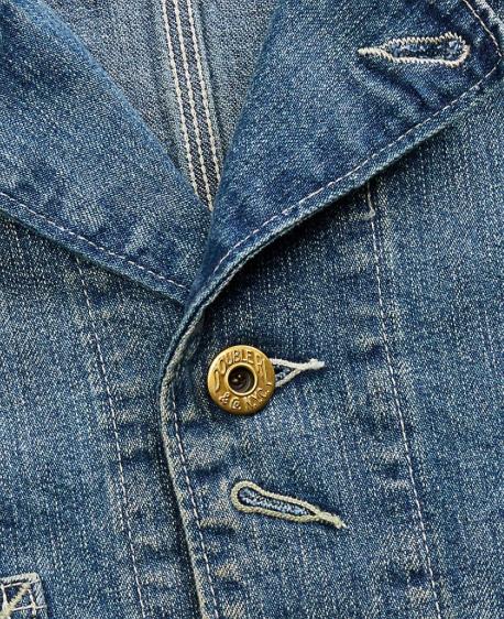 Lightweight jacket made from 11 oz. Japanese denim that is dyed with true indigo. Fine-wale corduroy collar. Details based on 1940s workwear. Vintage-inspired fit with dropped shoulders and a slightly tapered waist. Sanforized® to minimize shrinkage.