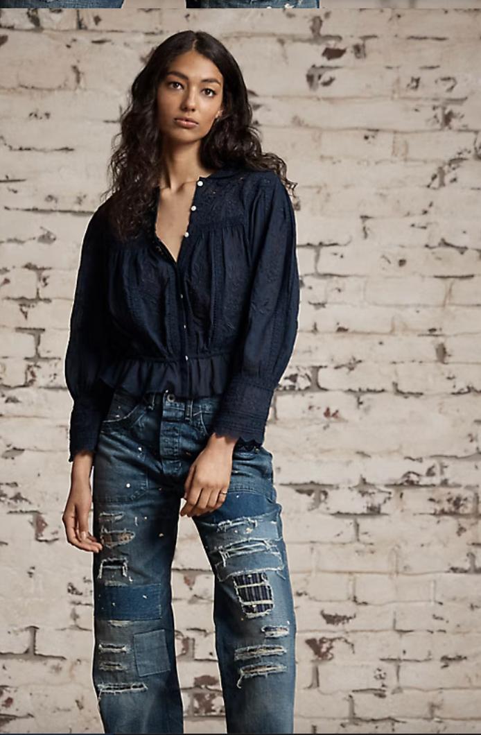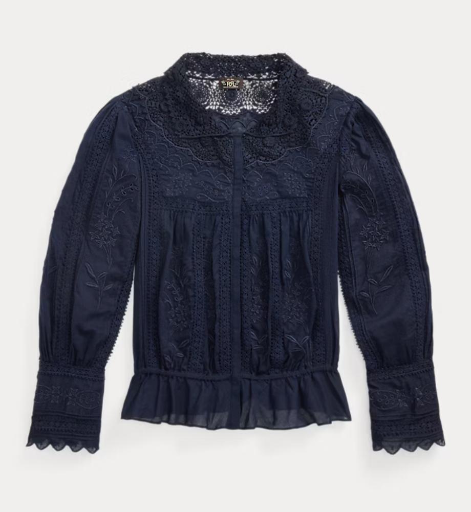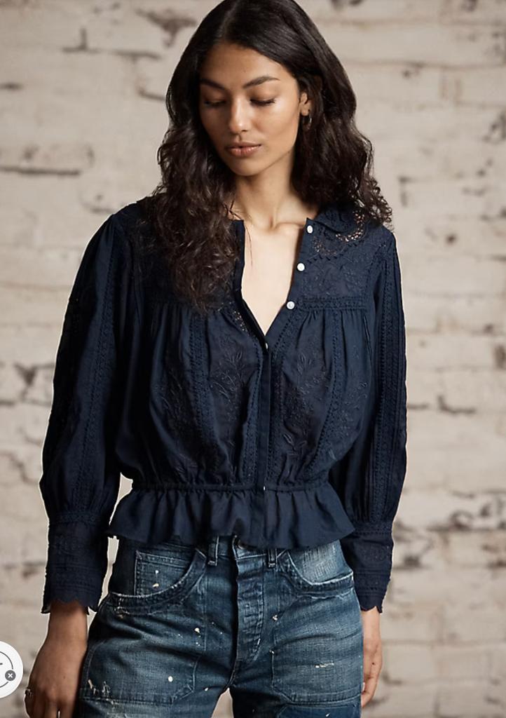 Embroidered Cotton Voile & Lace Blouse by RRL Ralph Lauren