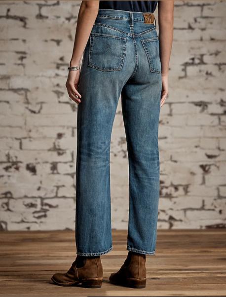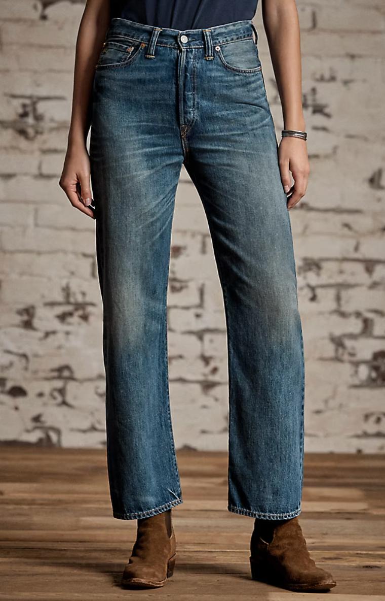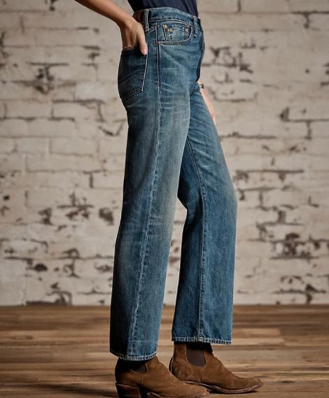 High-rise, straight-fitting jeans made with 10 oz. cotton-and-lyocell blended denim. Button-fly construction. ’40s inspired wash. Sanforized® to minimize shrinkage. Dyed with indigo.