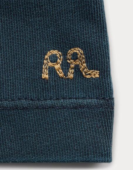 Relaxed-fitting T-shirt made with heavyweight cotton jersey. Bias ribbed crewneck. Chain-stitched embroidery of the Double RL Ranch logo at the hem.