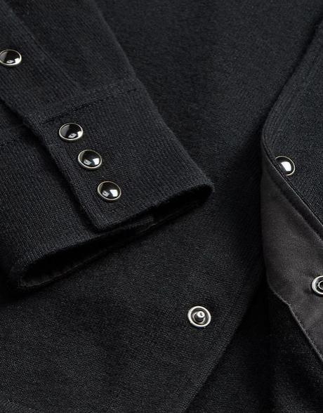 Slim-fitting Western-style shirt sweater knit with wool-and-cashmere yarn. Jersey-stitch construction. Metal button at the collar. Twill reinforcements at the interior. Washed for a soft texture.